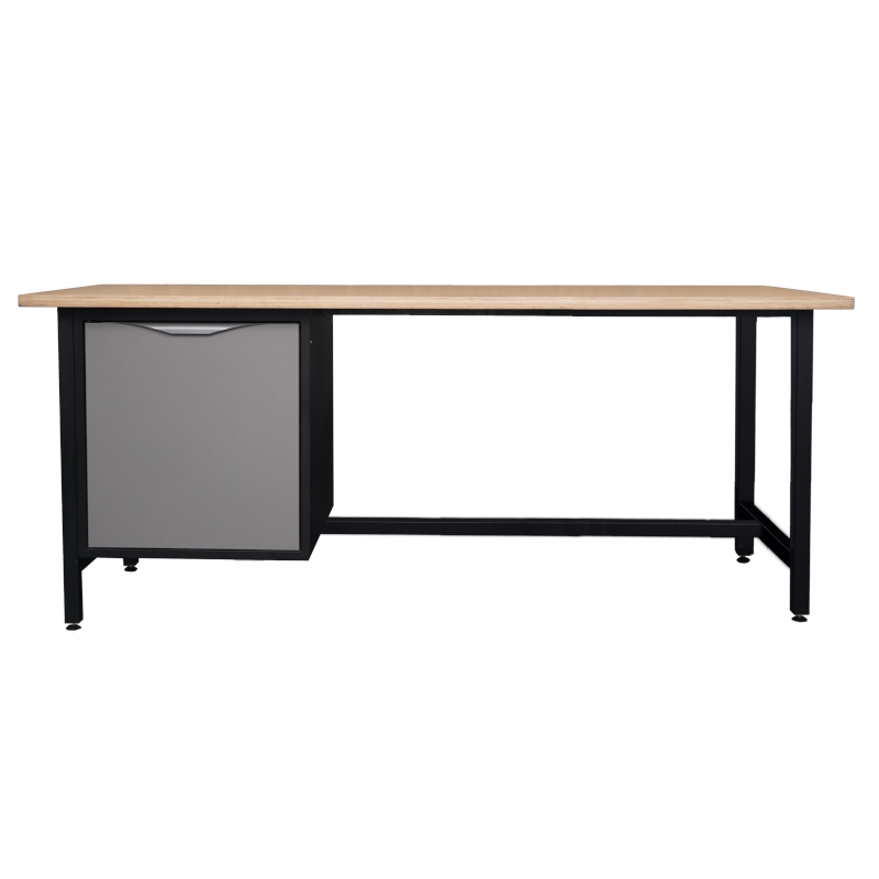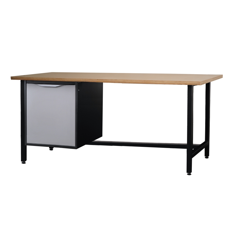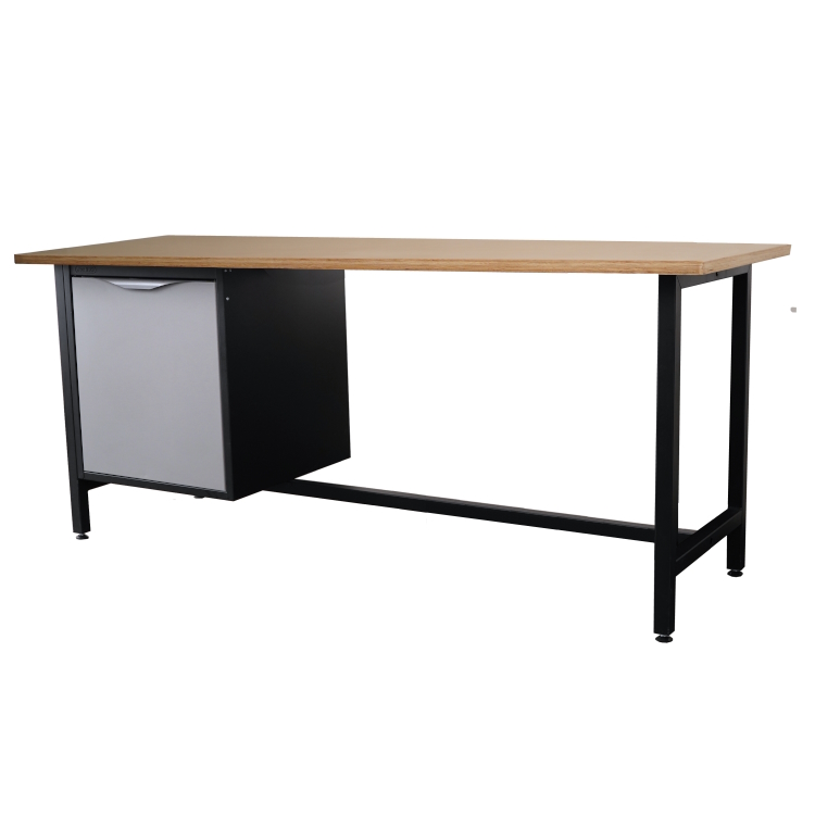 Biurko warsztatowe. Lekki stół warsztatowy z jedną szafką z półką i drzwiami.