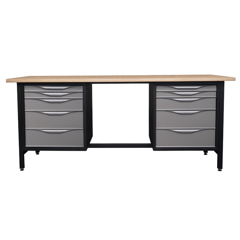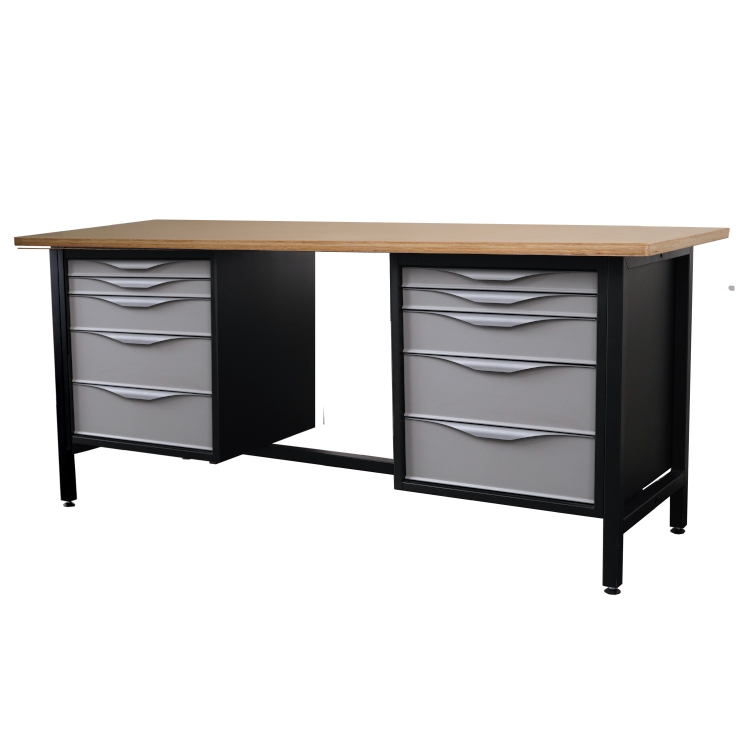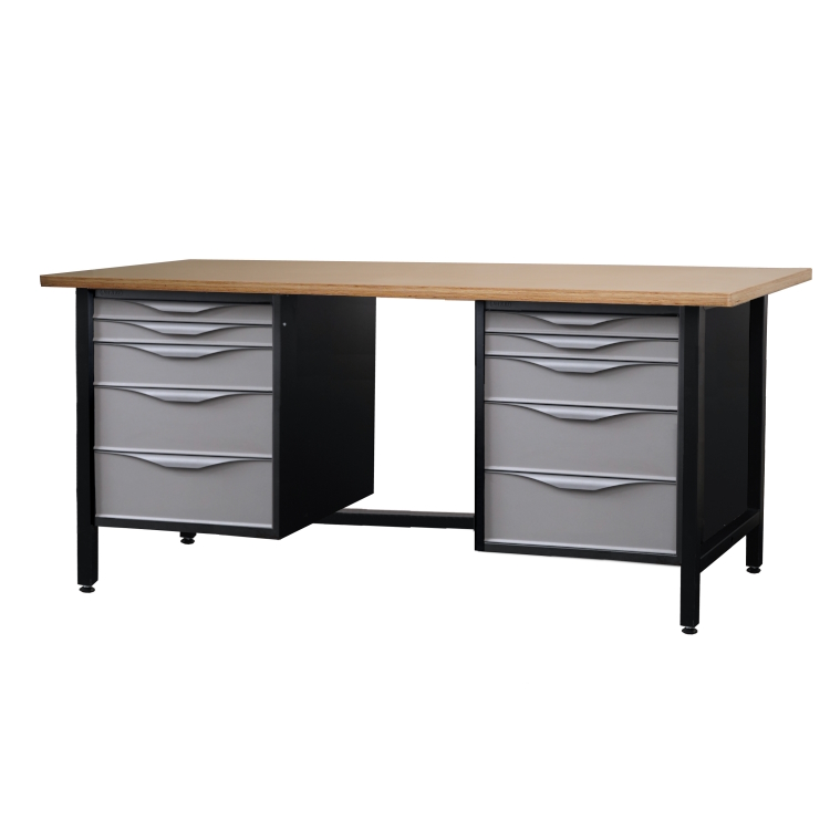 Biurko warsztatowe. Lekki stół warsztatowy z dwiema szafkami z szufladami
