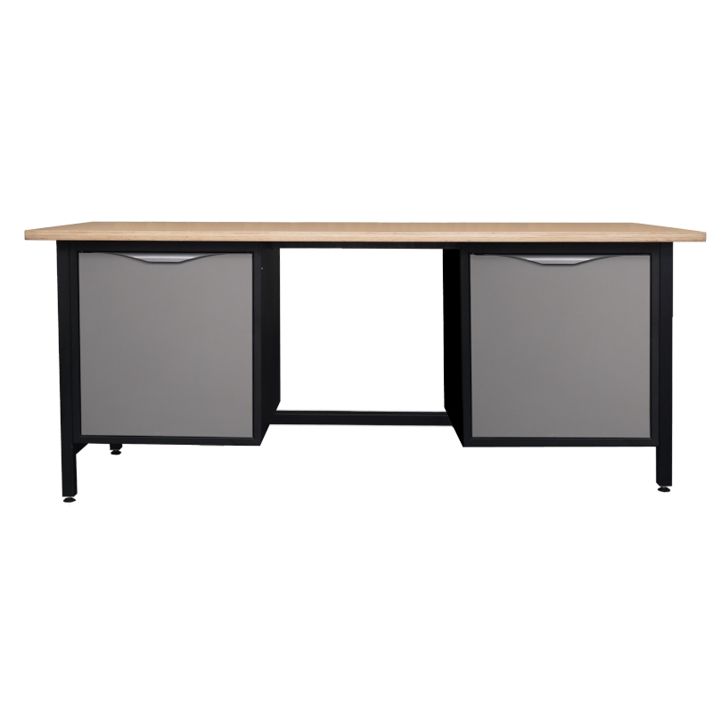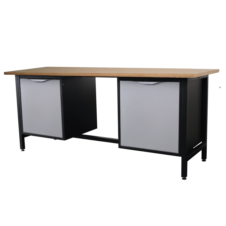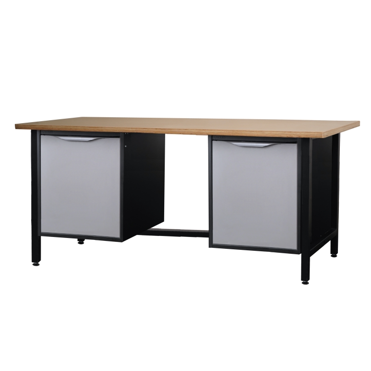 Biurko warsztatowe. Lekki stół warsztatowy z dwiema szafkami z półką.