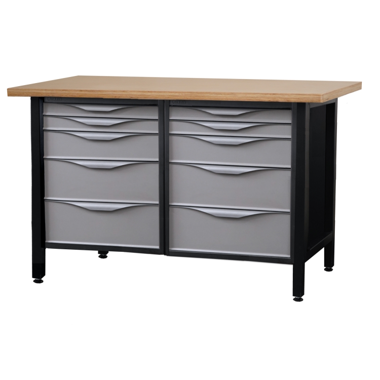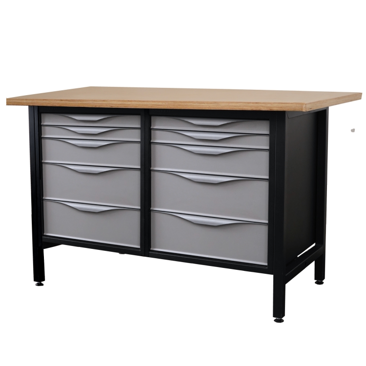 Biurko warsztatowe. Lekki stół warsztatowy z dwiema szafkami z szufladami