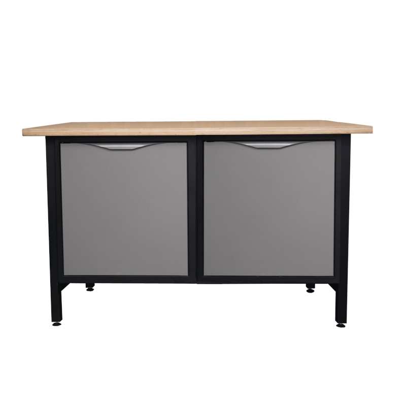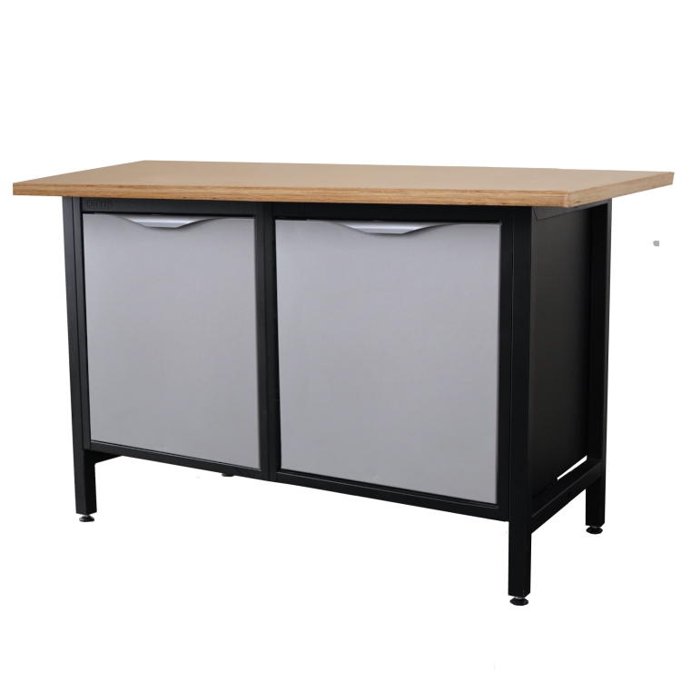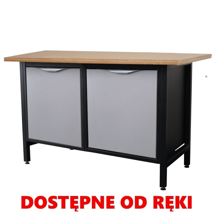 Biurko warsztatowe. Lekki stół warsztatowy z dwiema szafkami z półką.